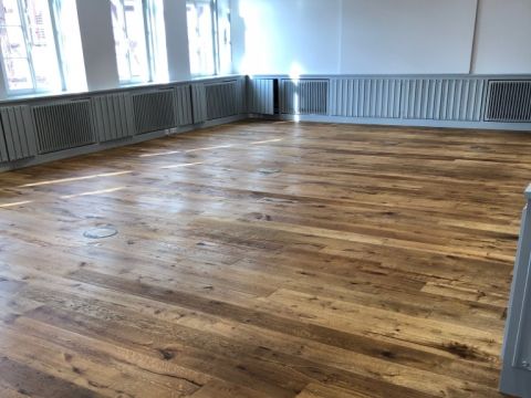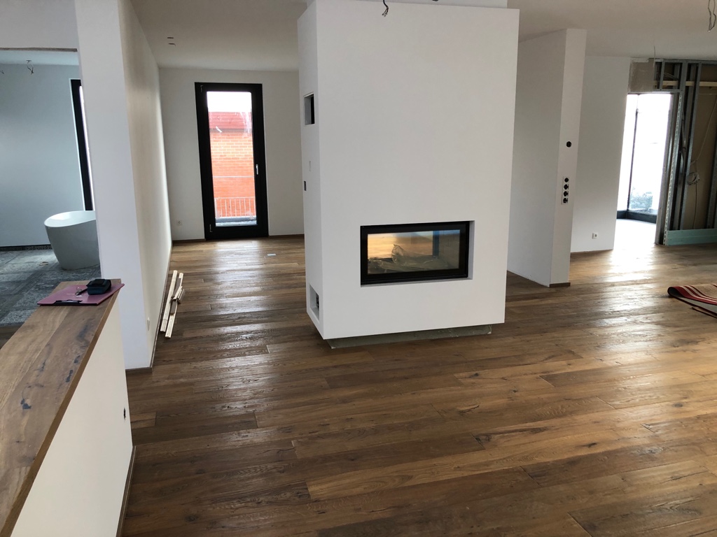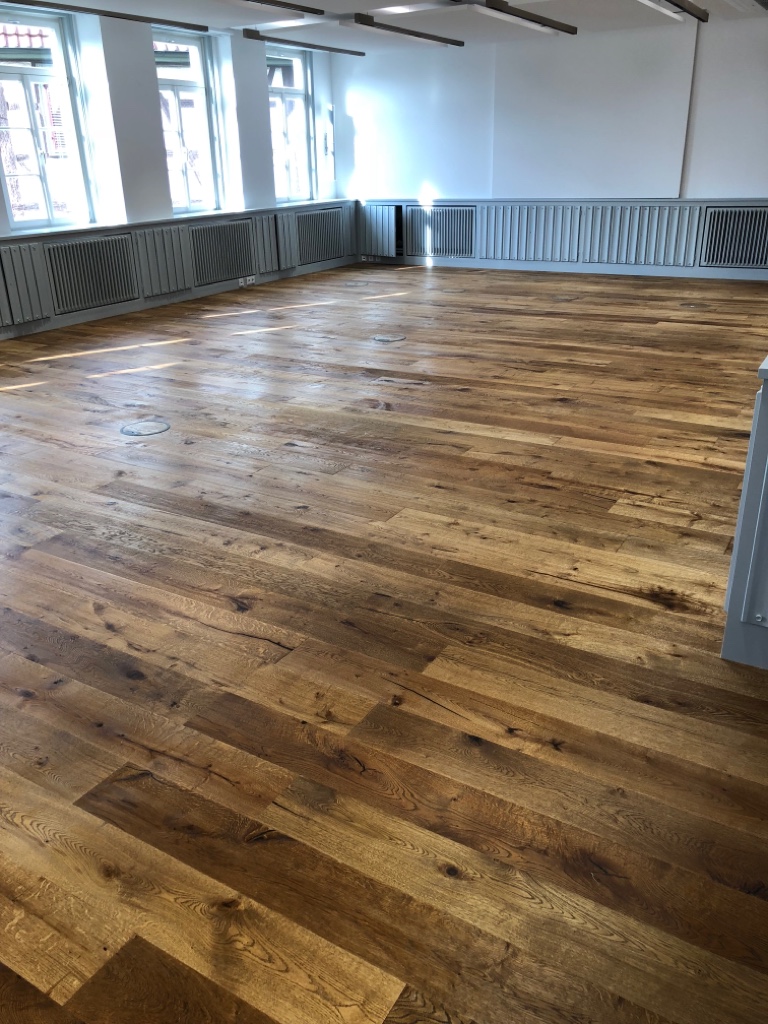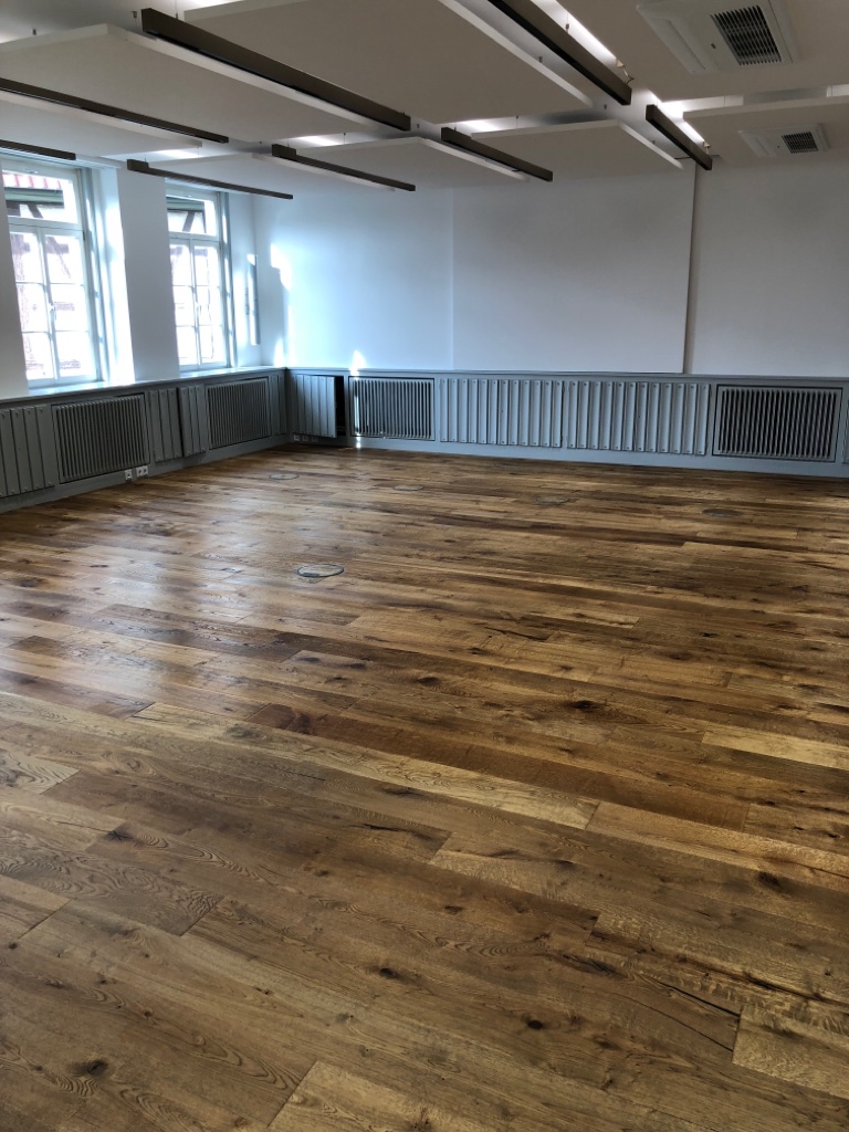 Und der Vorteil von echtem Holzboden: er kann einfach geschliffen und nachbearbeitet werden. Das ist ökologischer und nachhaltiger.